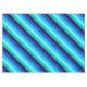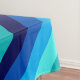 Eine 60" x 84" Tischdecke mit einem coolen Muster aus diagonalen Streifen in marineblau, kobaltblau, himmelblau, eisminze aquamarin und helltürkis.