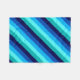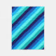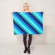 Eine kleine Fleecedecke in coolem Muster aus diagonalen Streifen in Marineblau, Kobaltblau, Himmelblau, Eisminze aquamarin und helltürkis.