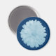 Dieser hübsche Magnet zeichnet sich durch ein Foto einer großformatigen Blume aus, die zu einer eisblauen Farbe verarbeitet wurde. Die Blume sitzt auf einem dunkelblauen Hintergrund.