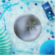Design zeigt ein Foto einer Schneeflocke in einem eisigen, winterlichen Hintergrund.