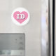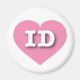 Dieser Magnet ist ein lebendiges rosa Herz mit der fett-, weiß-, Großbuchstaben-ID, der offiziellen Abkürzung für Idaho, den Edelstein-Staat.