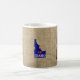 Eine Karte von Idaho, mit einer Hautstruktur aus Kartoffeln, die auf einem Hintergrundebild überlagert ist. Eine blaue Silhouette mit Textlesen "I (ein rotes Herz) IDAHO" erscheint ebenfalls. Passen Sie Ihren eigenen zusätzlichen Text auf der Rückseite an. Eine einfache Möglichkeit, Idaho Stolz zu zeigen.
