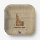Eine Karte von Idaho, mit einer Hautstruktur aus Kartoffeln, die auf einem Hintergrundebild überlagert ist. Passen Sie Ihren eigenen Text an. Eine einfache Möglichkeit, Idaho Stolz zu zeigen.