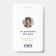 Verbessern Sie die Sicherheit Ihres Unternehmens mit unserem Abzeichen zur Identifikation von Firmenlogos für kundenspezifische Fotos. Dieses Abzeichen besticht durch ein individualisierbares Foto an Mitarbeitern, Namen und Titel auf der Vorderseite, zusammen mit Ihrem Logo. Es besticht durch Professionalität und Funktionalität. Die Rückseite bietet Platz für Firmenname und -adresse, wenn sie verloren gehen oder gefunden werden, oder personalisierten Text, der eine umfassende Identifizierung Ihrer Mitarbeiter ermöglicht. Mit seinem eleganten Design und der klassischen Typografie bietet dieses Abzeichen ein modernes, minimalistisches Design, das für jedes Geschäftsumfeld geeignet ist. Erhöhen Sie Ihr Corporate Branding und Ihre Sicherheitsmaßnahmen durch unsere individuell anpassbare ID-Abzeichen-Lösung.