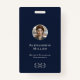 Verbessern Sie die Sicherheit Ihres Unternehmens mit unserem Foto Identification Abzeichen für kundenspezifische Logos. Dieses Abzeichen besticht durch ein individualisierbares Foto an Mitarbeitern, Namen und Titel auf der Vorderseite, zusammen mit Ihrem Logo. Es besticht durch Professionalität und Funktionalität. Die Rückseite bietet Platz für Firmenname und -adresse, wenn sie verloren gehen oder gefunden werden, oder personalisierten Text, der eine umfassende Identifizierung Ihrer Mitarbeiter ermöglicht. Dieses Abzeichen mit seinem eleganten marineblau-blauen Hintergrund und der grauen klassischen Typografie bietet ein modernes, minimalistisches Design, das für jedes Geschäftsumfeld geeignet ist. Erhöhen Sie Ihr Corporate Branding und Ihre Sicherheitsmaßnahmen durch unsere individuell anpassbare ID-Abzeichen-Lösung.