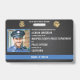 Das personalisierbare Abzeichen der Polizeidienststelle mit einem Polizeiemblem an der Spitze, das an Ihre Abteilung angepasst werden kann, sowie ein Platz für das Staat-Logo. Passen Sie mit dem Foto des Offiziers auf den links an. Neben dem Foto werden Name, Abzeichen, Dienstgrad und Dienststelle des Offiziers angezeigt. Fügen Sie auf der Kartenrückseite Ihren eigenen Strichcode hinzu, zusammen mit Ausstellungs- und Ablaufdaten und einer Beschreibung des Offiziers, Kapitäns, Chefs oder Büroangestellten.