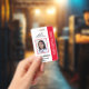 Personalisieren Sie dieses berufliche Foto-Sicherheits-Rot-Abzeichen mit Ihren individuellen Daten.