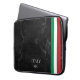 This laptop sleeve transforms technology into a design accessory for the "Identity Tech" trend. The surface features a graphic print simulating black marble with white veining. On the side, three vertical tricolor stripes frame the customizable "M.G" initials. The print finish is matte and scratch-resistant, offering elegant protection that communicates professionalism and attention to material details of Italian design.