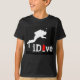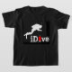 iDive mit rotem Unterwasseratemgerätbehälter anstelle des Buchstaben "ich" im Tauchen u. in Fahrwerk. weiße Kontur des Unterwasseratemgerättauchers oben in der Mitte des Kastens