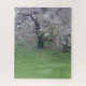 Schöne landschaftliche Landschaft eines Single Baum im Frühling. Mit dem Ausbruch des Frühlings reichen die anmutigen Äste eines blühenden Baumes bis zu einem Grasboden im Vordergrund.