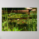 eine ruhige Szene mit einem Teich und aquatischen Pflanze, die in einem malerischen Stil gehalten sind.