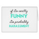 If It's Really Funny It's Probably Harassment Design. This is a short funny quowhich is great as a funny gag gift for HR employee. Also suitable as an Human Resource Gift for Coworkers.