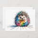 Ein freundlicher Igel in bunten Farben, eine kindliche Zeichnung eines Igels, mit Tusche und Kreide, gekleckst und geschmierte ist die Farben als Stil und Effekt des lustigen Bildes.
