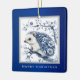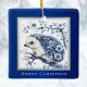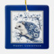 Dieser super niedliche Junior-Igel ist alle in blumenblauen Toile Chinoiserie, ähnlich wie Delft und Portugiesisch Azulejo Fliesen Muster. Dieser Igel, Blume und Bäume sind in einem sanften königsblauen und von einem blauen und silbernen Rahmen umgeben. Die Worte "Frohe Weihnachten" erscheinen unten in Silber, und Sie können diesen Text bearbeiten, wenn Sie gewollt, solange er auf eine Zeile passt.