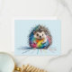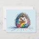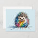 Ein freundlicher Igel in bunten Farben, eine kindliche Zeichnung eines Igels, mit Tusche und Kreide, gekleckst und geschmierte ist die Farben als Stil und Effekt des lustigen Bildes.