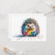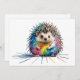 Ein freundlicher Igel in bunten Farben, eine kindliche Zeichnung eines Igels, mit Tusche und Kreide, gekleckst und geschmierte ist die Farben als Stil und Effekt des lustigen Bildes.