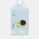 Ein skurriles Design mit einem niedlichen Igel, der einen Zweig auf einem Hintergrund mit Blasen auschaut.