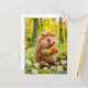 Ein niedlicher gefühlter Igel, der einen Apfel trägt, während er sich in einem Bett aus Gänseblümchen ausruht. Die Wolltexturen verleihen diesem bezaubernden Waldmoment einen besonderen Charme.