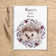 Dieser niedliche Baby-Tier-Planer hat das Jahr und Ihren mit Monogramm Namen in der modernen kursiven Schrift, über einer Aquarellkunst-Illustration eines bezaubernden Igels und einem mädchenhaften, botanischen Kranz aus Rosa, Lila, violetten Blumen und Blätter, auf weißem Hintergrund. Sie werden diesen trendigen, naturbezogenen Kalender-Planer Liebe geben. Matching Artikel sind in unserem Shop erhältlich.