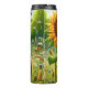 Diese wunderbare Abbildung zeigt einen niedlichen Igel, der auf seinen Hinterbeinen stehend ist und eine kleine Sonnenblume bis zur Nase hält, als ob sie riecht. Der Igel ist von einer blühenden, sonnigen Wiese umgeben, die mit großen Sonnenblumen, bunten Wildblumen, Ladybugs und flatternden Schmetterlingen unter einem strahlend blauen Himmel mit verstreuten Wolken gefüllt ist.