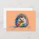 Ein freundlicher Igel in bunten Farben, eine kindliche Zeichnung eines Igels, mit Tusche und Kreide, gekleckst und geschmierte ist die Farben als Stil und Effekt des lustigen Bildes.