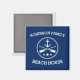 Stilvolles Square Kühlschrank Magnet mit Ihrem personalisierten Strandhaus, Seehaus, Familiennamen oder anderen Texten mit einem eigenen nautischen Bootanker, gekreuzten Rudern und Sternen in Weiß auf Marineblau oder wählen Sie Hintergrundfarben, um Ihre Einrichtung.