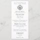 Dieses elegante und moderne Menü bietet einen weißen Hintergrund mit schwarz-grauem Text. An der Oberseite ist ein Muster-Logo gedruckt, das Sie durch Ihr eigenes Unternehmens- oder Firmenlogo ersetzen können. Sie können Ihren Firmennamen und den Titel Ihrer Veranstaltung über dem Logo hinzufügen. Im unteren Teil des Menüs stehen drei Gänge mit jeweils zwei Optionen zur Auswahl. Sie können die Menüpunkte durch die Menüoptionen Ihrer Wahl ersetzen. Es eignet sich zum Frühstück, Brunch, Mittag- oder Abendessen.