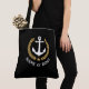 Eine stilvolle Tasche mit Ihrem personalisierten Namen, Bootsnamen oder anderen gewünschten Text. Ein speziell entworfener nautischer Bootsanker mit goldenen Blätter und Stern auf schwarz. Passen Sie die Basisfarbe einfach an Ihre aktuelle Dekoration oder Ihr aktuelles Thema an. Wiederverwendbar und ideal für Ferien, Shopping und Reisen. Das perfekte personalisierte Geschenk für jeden Anlass.
