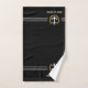 Persönlich gestalten Sie Ihre Zuhause mit einem eleganten nautischen Handtuchhandtuch-Set mit Ihrem Bootsnamen, Familiennamen oder anderen gewünschten Texten. Dieses Design ist mit einem Vintagen Bootanker, goldenen Blätter mit Sternemblem und feinen weißen Streifen auf einem schwarzen Hintergrund ausgestattet. Die Rückseite des Handtuchs ist weiß, während Sie die Primärfarbe der Vorderseite leicht an Ihre aktuelle Dekoration oder Ihr aktuelles Thema anpassen können.