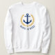 Ein eigens entworfener nautischer Bootsanker, goldene Lorbeerfische und ein Goldstar mit Ihrem Personalisierten Namen oder Schiffsnamen auf einem weißen Sweatshirt. Mehrere Shirt-Farben zur Auswahl. Macht ein großartiges Geschenk.