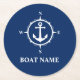 Ihr Bootname Compass Anchor Blue Round Runder Pappuntersetzer