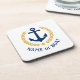 Ein elegantes Set mit nautischen Themen Cork Back Getränkekopfer mit Ihrem personalisierten Bootsnamen, Familiennamen oder anderen gewünschten Text. Ein speziell entworfener Bootanker mit goldfarbenen Lorbeertönen und einem weißen Stern oder passen die Basisfarbe leicht an Ihre aktuelle Dekoration oder Ihr aktuelles Thema an.