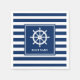 Ihr Personalisierter Name oder Text mit einem Nautical Classic Ships Wheel Helm auf schicken Navy Blue Striped Napkins.