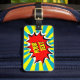 Dieses Comic-Design mit einer farbenfrohen Pop-Blase und Ihrem eigenen Text auf einem Gepäckanhänger ist eine großartige Möglichkeit, das Gepäck besser zu erkennen.