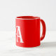 Tasse in leuchtend roter Farbe ( #FF000.) mit kühlem Buchstaben . Passen Sie es jetzt mit Ihrem eigenen Monogramm an. Gutes Geschenk für die Festsaison.