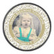 Dies ist ein Gedenkdesign mit Ihrem Foto und Text zum Feiern Ihres 70. Geburtstages. Es gibt eine Textvorlage, die es einfacher macht, die Nachricht und das Datum zu personalisieren. Es gibt auch eine Fotovorlage, um es einfach zu machen, Ihr Bild hinzuzufügen. Dieser Rahmen ist ein Zufallszahlenmuster mit einer goldenen Meilensteinzahl 70, die zufällig auf einem weißen Hintergrund verteilt ist. Das ist eine lustige Idee für Gastgeschenke, die an Ihrem 70. Geburtstag feiern, oder es ist für jeder Anlass geeignet, die den Meilenstein 70 feiern; ändern Sie einfach den Text, um ihn an die Veranstaltung anzupassen. Verwenden Sie die bereitgestellten Vorlagen, um Ihre personalisierte Nachricht, Ihr Datum und Ihr Foto hinzuzufügen.