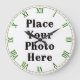 Stellen Sie Ihr Foto hier eine benutzerdefinierte Wanduhr, Ihr Foto erscheint hinter den Uhrennummern für ein wirklich berufliches Aussehen - römische Klassiker grün und gold