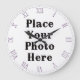 Stellen Sie Ihr Foto hier eine benutzerdefinierte Wanduhr, Ihr Foto erscheint hinter den Uhrennummern für ein wirklich berufliches Aussehen - perlisierte lila Muster römische Klassiker