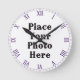 Stellen Sie Ihr Foto hier eine benutzerdefinierte Wanduhr, Ihr Foto erscheint hinter den Uhrennummern für einen wirklich beruflichen Look - lila Folientafel römische Klassiker