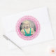 Ihr Foto mit einfachen Streifen Muster Rosa/Weiß Runder Aufkleber