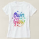 Dieser edgy T - Shirt enthält den Satz "Own Your Glow" in einem kühnen, schwarzen Schriftart mit einem Hintergrund aus leuchtenden Neonbeleuchtung und einer City-Skyline. Das Design erfasst die lebendige Energie des urbanen Lebens und den Power des individuellen Ausdrucks, perfekt für diejenigen, die wollte, sich von der Masse abzuheben und ihr einzigartiges Glühen zu genießen.