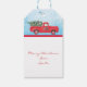 Der Helfer des Weihnachtsmanns wird diese personalisierten Geschenketiketten für alle guten Jungen und Mädchen auf der Strecke des Weihnachtsmannes schätzen. Schöne Aquarellkunst mit einem roten LKW, der einen Weihnachtsbaum trägt. Fügen Sie eine persönliche Nachricht auf der Rückseite des Weihnachtsmanns, die allen ein frohes Weihnachtsfest wünscht. Spaß beim Feiern von Geschenkpackungen!