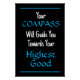 Dekorieren Sie Ihre Wand mit dem Ausdruck "Ihr KOMPASS führt Sie zu Ihrem höchsten Gut" in weißer und blass blauer Schrift. Schwarzer Hintergrund.