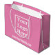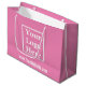 Eine Markentasche ist ein praktisches Instrument, um Ihr Unternehmen zu fördern. Diese rosa Tasche hat ein großes Display Bild, das Sie mit Ihrem Logo ersetzen können. Der Text der weißen Anzeige befindet sich unter dem Bild. Sie können den Text bearbeiten, um eine benutzerdefinierte Nachricht wie Ihre Website anzuzeigen.
