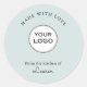 Personalisiertes Logo "Made with Liebe" Aufkleber auf einem staubblauen Hintergrund