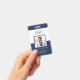 Passen Sie diese vertikalen Abzeichen mit Ihrem Firmenlogo an und personalisieren Sie sie mit einem Foto und Namen Ihrer Mitarbeiter.