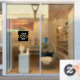 Ein schwarzer und goldener Firmenname und Logo-Branding-Fenster Dekorieren und Fensterklammern mit Ihrem Firmennamen, Slogan oder Tagline und Firmenlogo. Ein personalisiertes Schaufenster, ideal für Schaufenster und Schaufenster. Ideal für einen Geschäftshändler, der sein Fenster mit seinem Firmennamen und seiner Markendarstellung dekorieren möchte.
