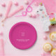 Hochladen des Logos Hinzufügen Text rosa Solid Farbe Moderne elegante anpassbare Vorlage 7" Rundpapier Platte.
