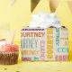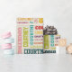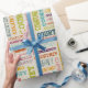 Erstellen Sie ein sehr personalisiertes Packpapier. Ihr individuelle Name erscheint in diesem Geschenkpapier in einer Collage verschiedener Schriftart und Schriftzeichen. Die Buchstaben Rot, Gelb, Orange, Kalkgrün, Türkis, Rosa und lila sind Set vor einem hellen bräunlichen oder cremefarbenen Hintergrund. Dieser Stil ist ideal geeignet für mittellange Namen von 5 bis 8 Buchstaben für kürzere oder längere Namen, die die anderen Designs dieser Kollektion anzeigen.