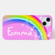 Hübscher rosa Himmel, Regenbogendesign Gehäuse. Personalisieren Sie mit Ihrem eigenen kurzen Namen, dieses Beispiel liest Emma. Exklusiv von Sarah Trett für www.mylittleeden.com entworfen und illustriert